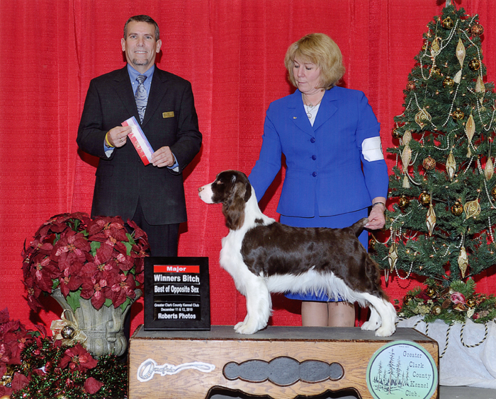 Mum finished her AKC Championship with all points from the Bred By Exhibitor class. She is being shown as a special and finished her Grand Championship in January 2012 at the Rose City Cluster in Portland, OR.